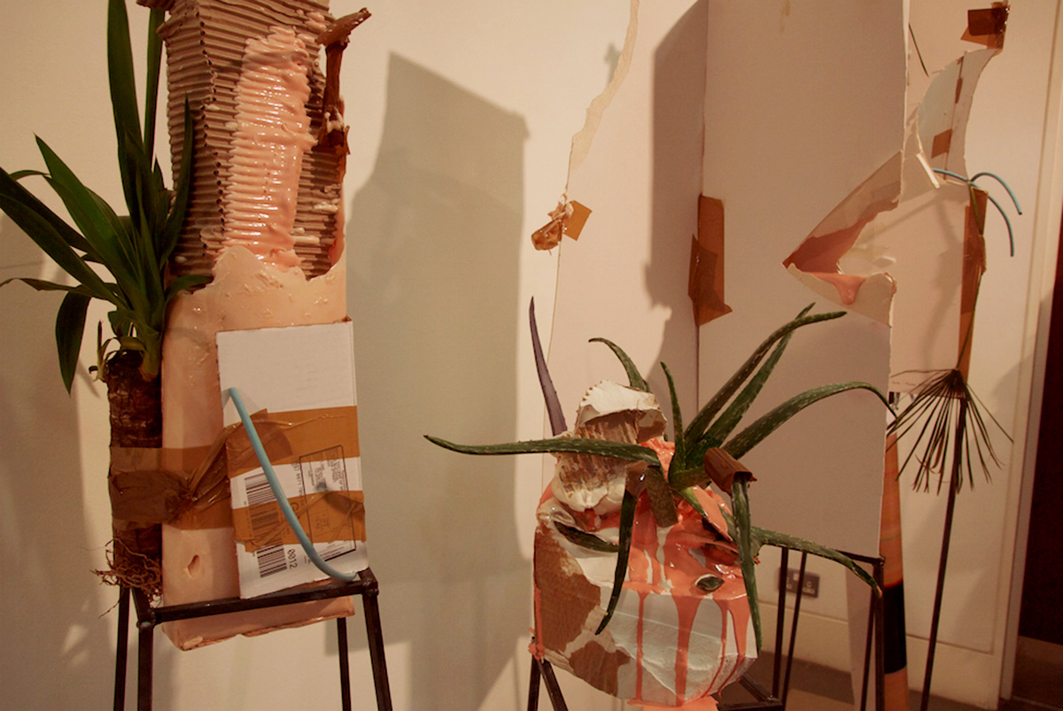 Materials; Card, tape, succulents, foam, steel, silicone, plaster.