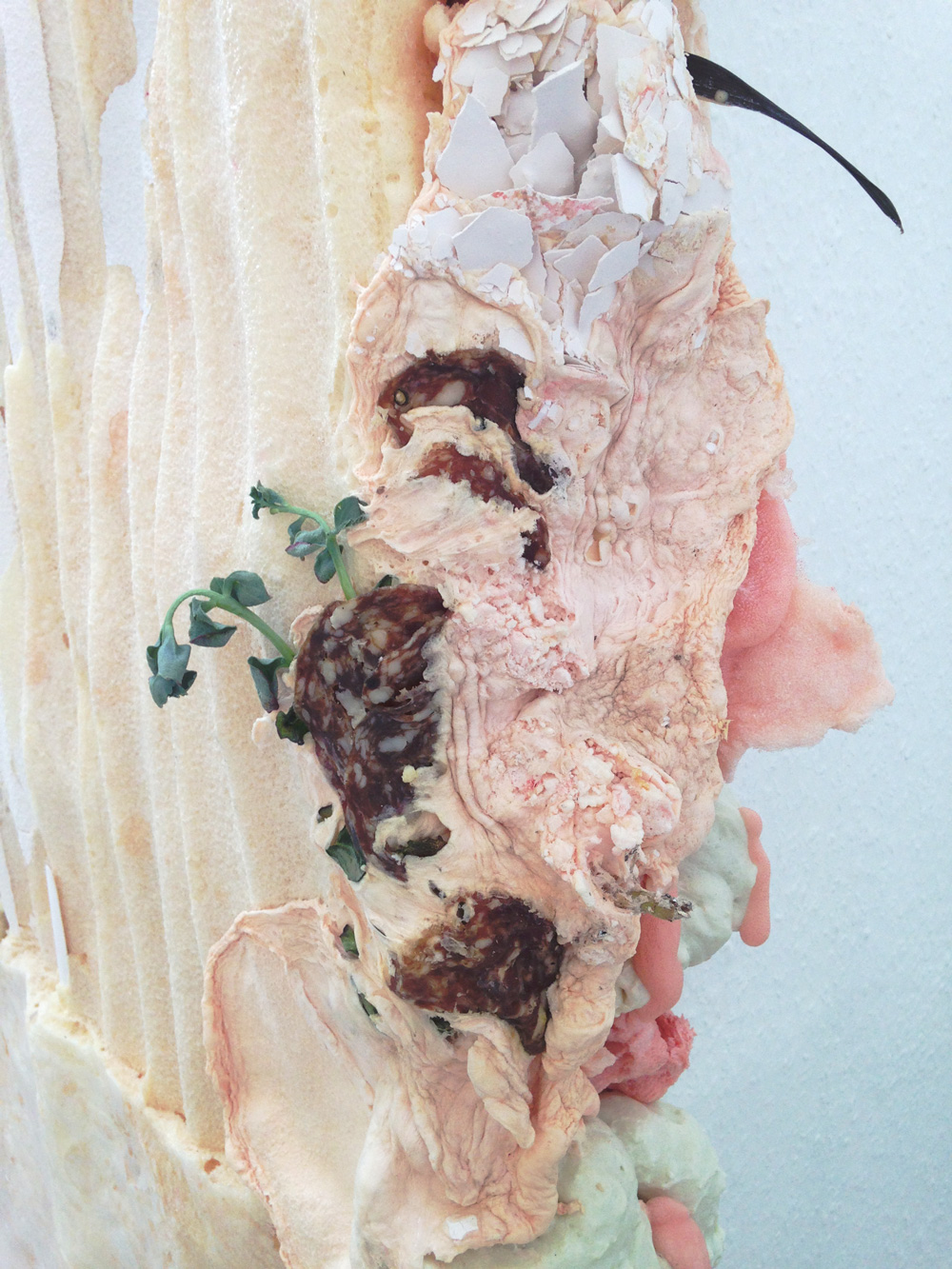 Foam, steel, succulents, salami, mortadella, cabling, ducts, found objects.